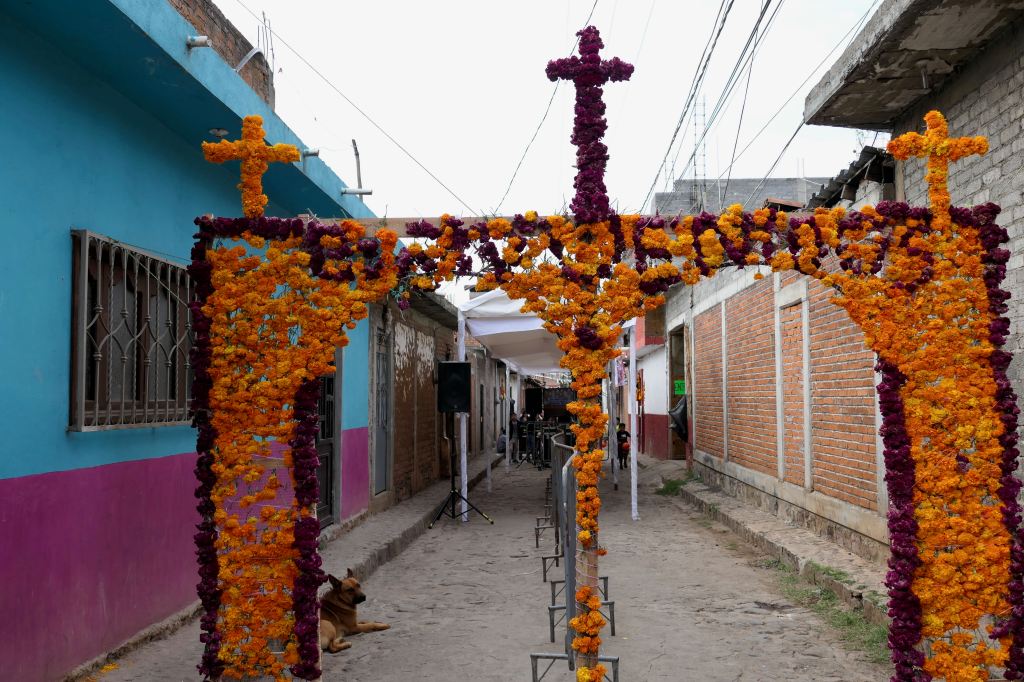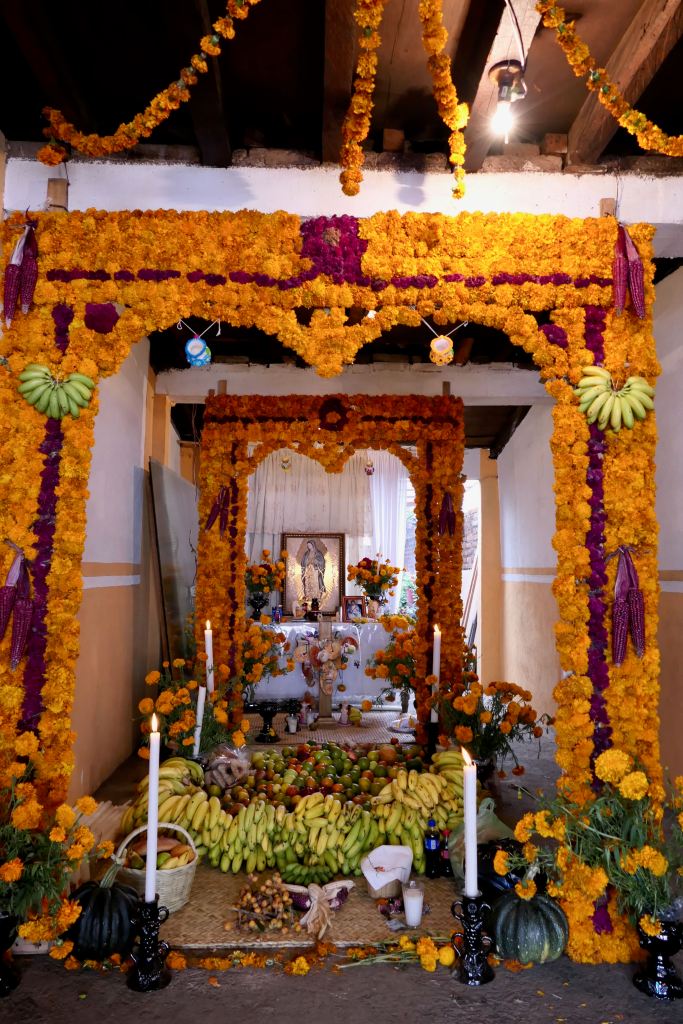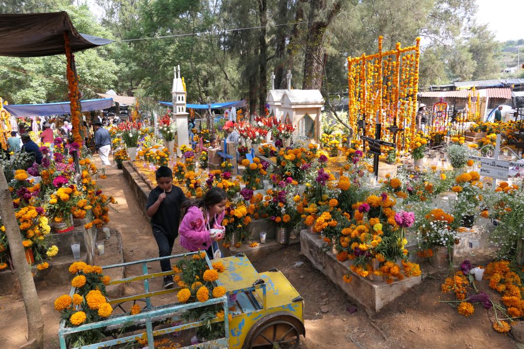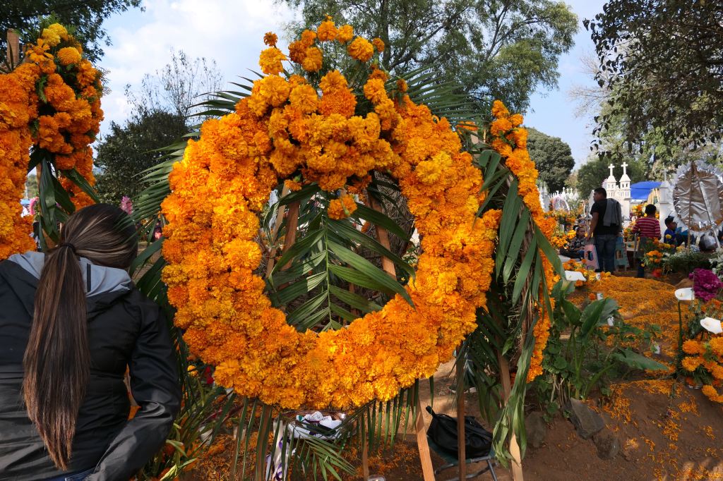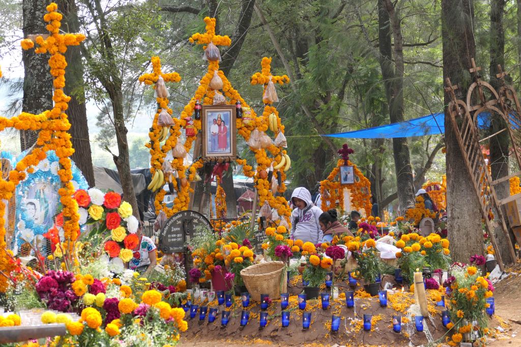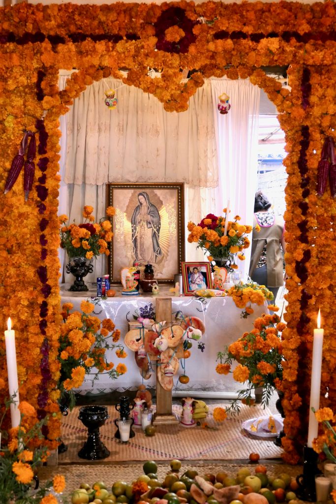 We’d been informed that the Purépechas of this village believe that the spirits of those who die within the year go home rather than to the cemetery, so families build private alters to welcome them.