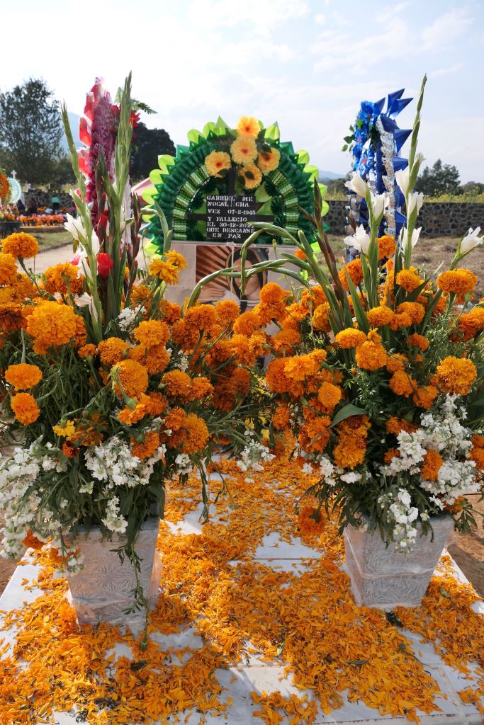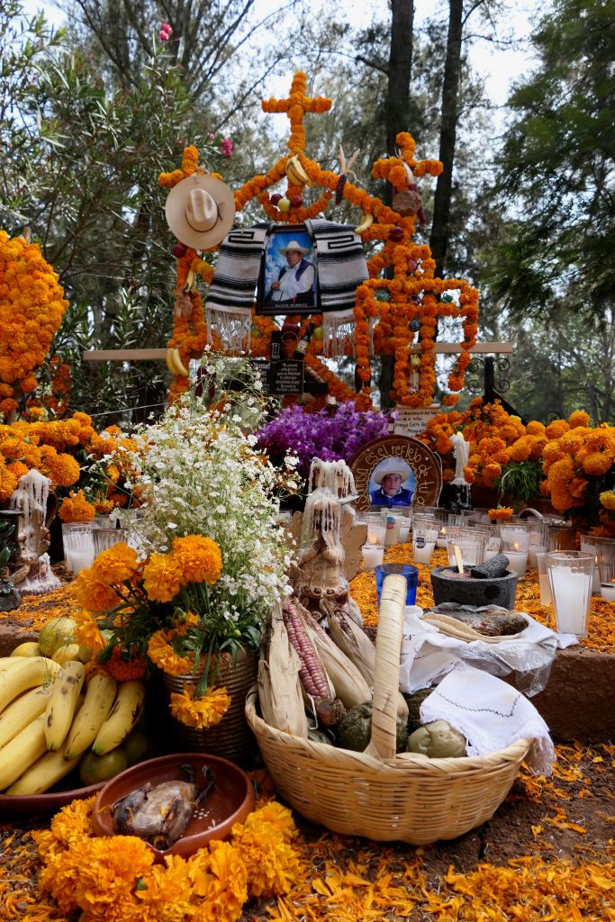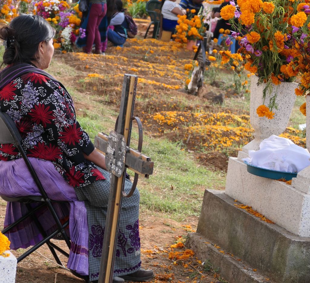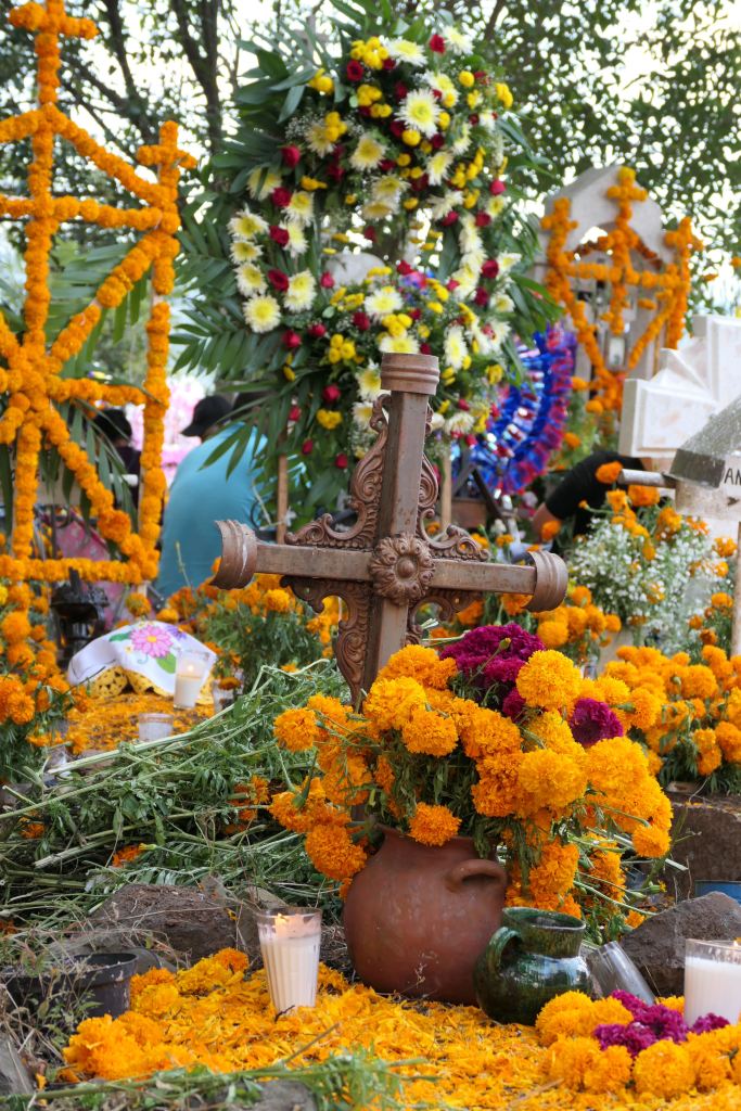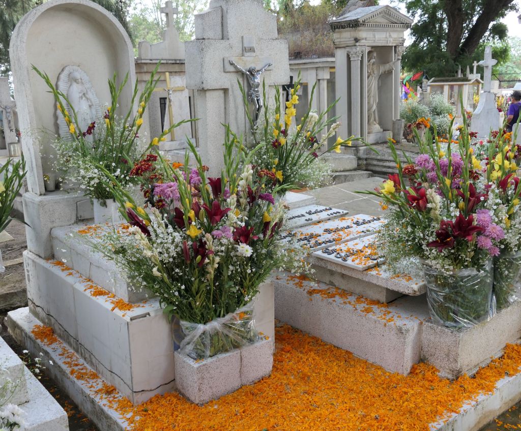 I reflect on my own/America’s day of remembrance, Memorial Day. It’s a nice reminder — bringing flowers to the cemetery – a ritual revered by my mother – and honoring and remembering Veterans and others who have passed before us. I realize that Mexico’s Day of the Dead, however, is not merely about remembering and honoring, it is actually about connection, — connection not only with those who have passed but also with family and community.