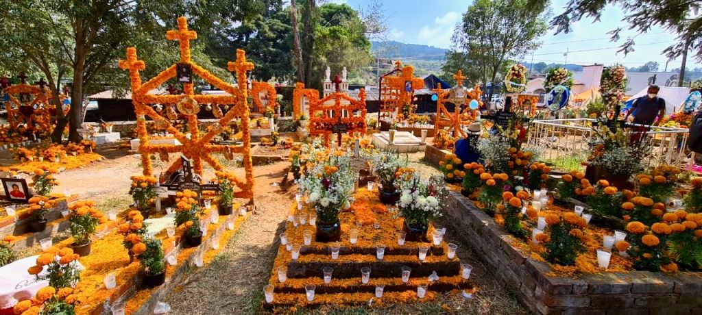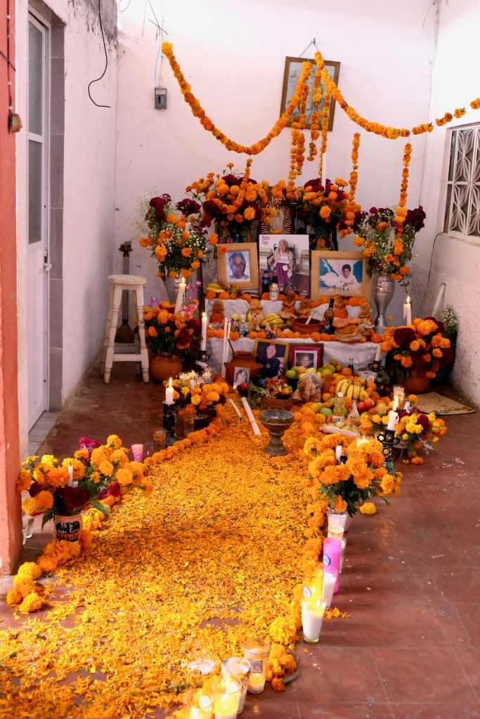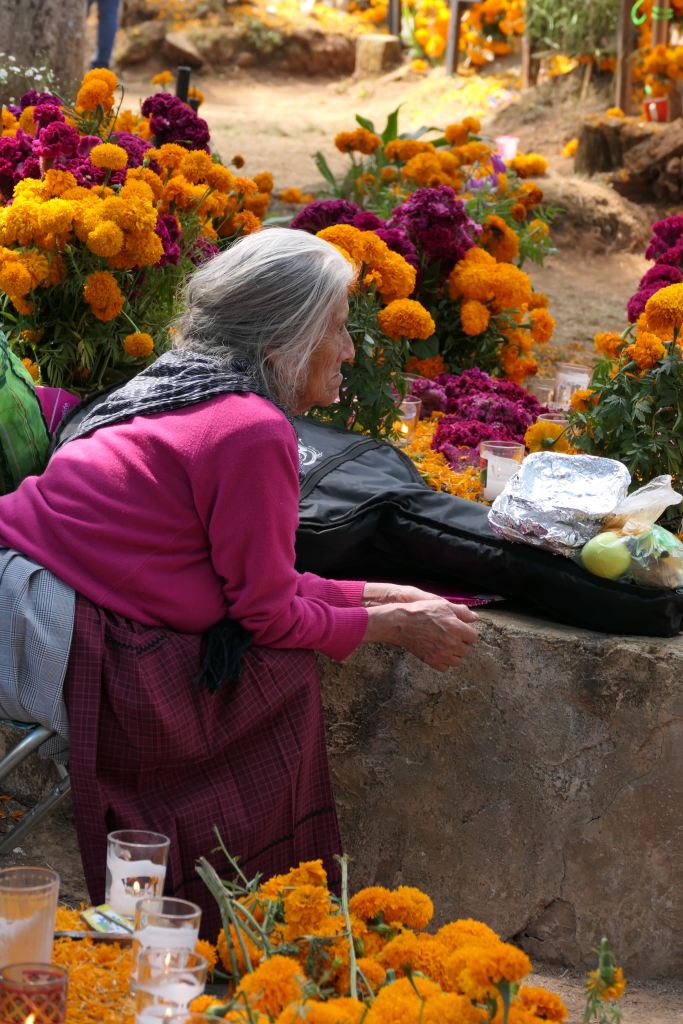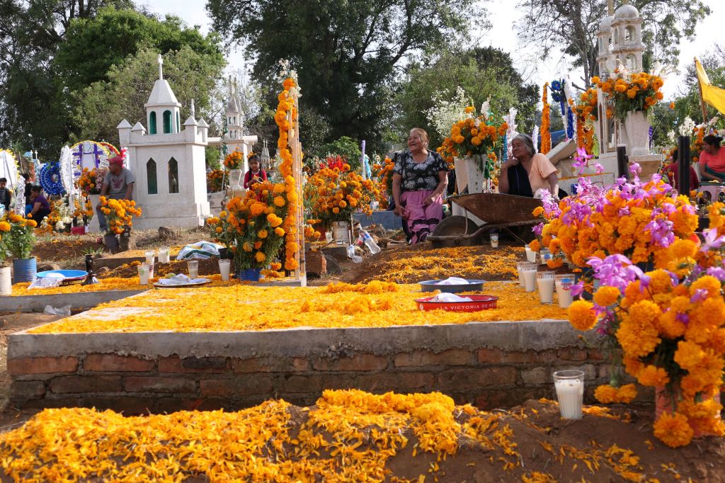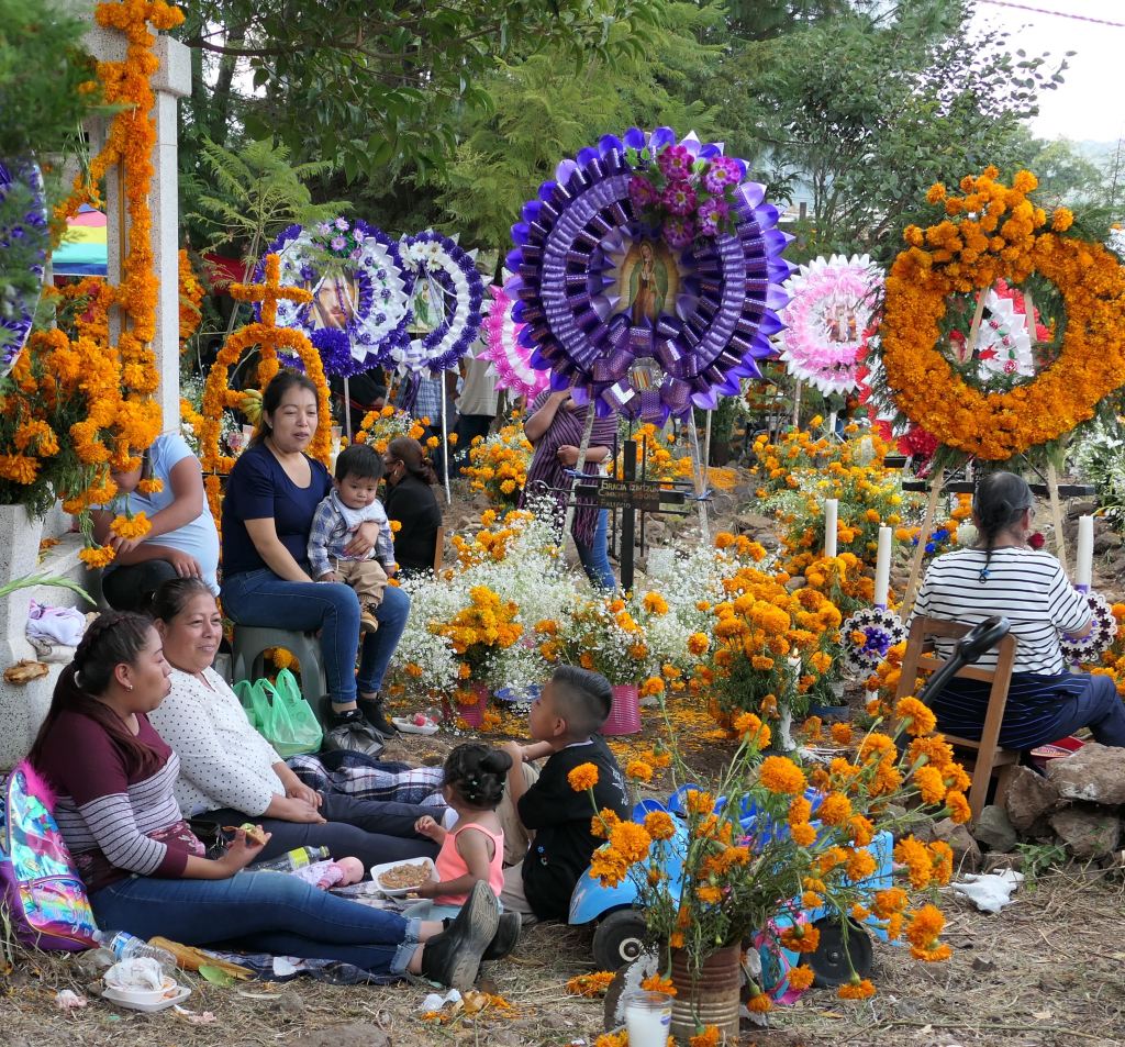 I reflect on my own/America’s day of remembrance, Memorial Day. It’s a nice reminder — bringing flowers to the cemetery – a ritual revered by my mother – and honoring and remembering Veterans and others who have passed before us. I realize that Mexico’s Day of the Dead, however, is not merely about remembering and honoring, it is actually about connection, — connection not only with those who have passed but also with family and community.