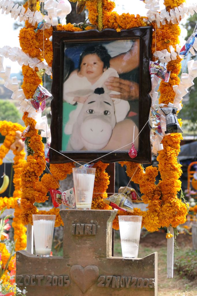 Having a home in Patzcuaro, I first visited my “local” cemetery, Nueva de Panteón, on the afternoon of November 1 to observe the preparations for the return of children and innocents.