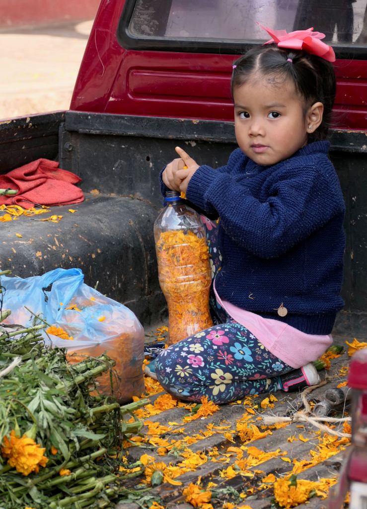 A smiling young girl, around ten, approached me and said, in English, “Hello.” I respond, “Excellent English!” We chat a while – she in English and I in my basic Spanish. As we say goodbye, I ask to take her photograph. Later, she finds me to offer a gift of Pan de Muertos.