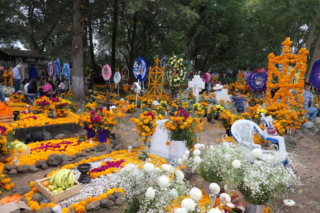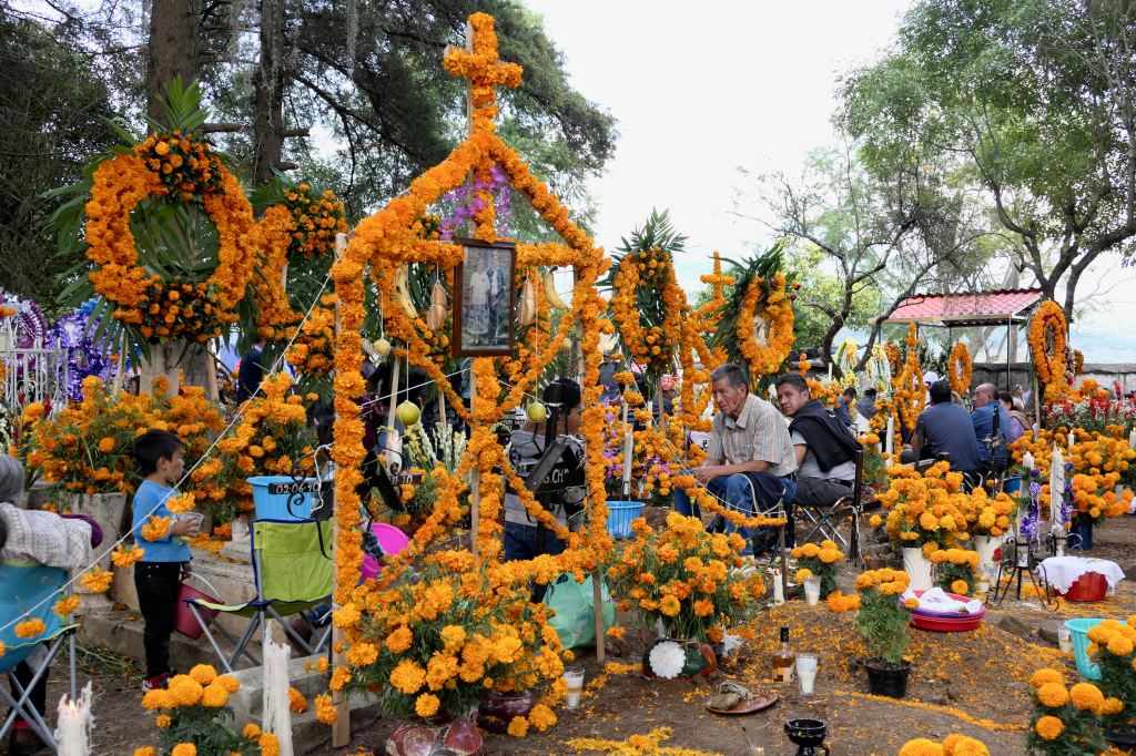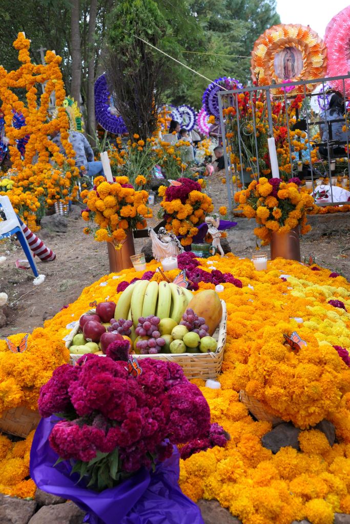 The next day, November 2, friends and I drove around Lake Patzcuaro to immerse ourselves in the preparations and celebrations of several indigenous Purépecha villages and cemeteries as the living prepared for the return of adult spirits this night.